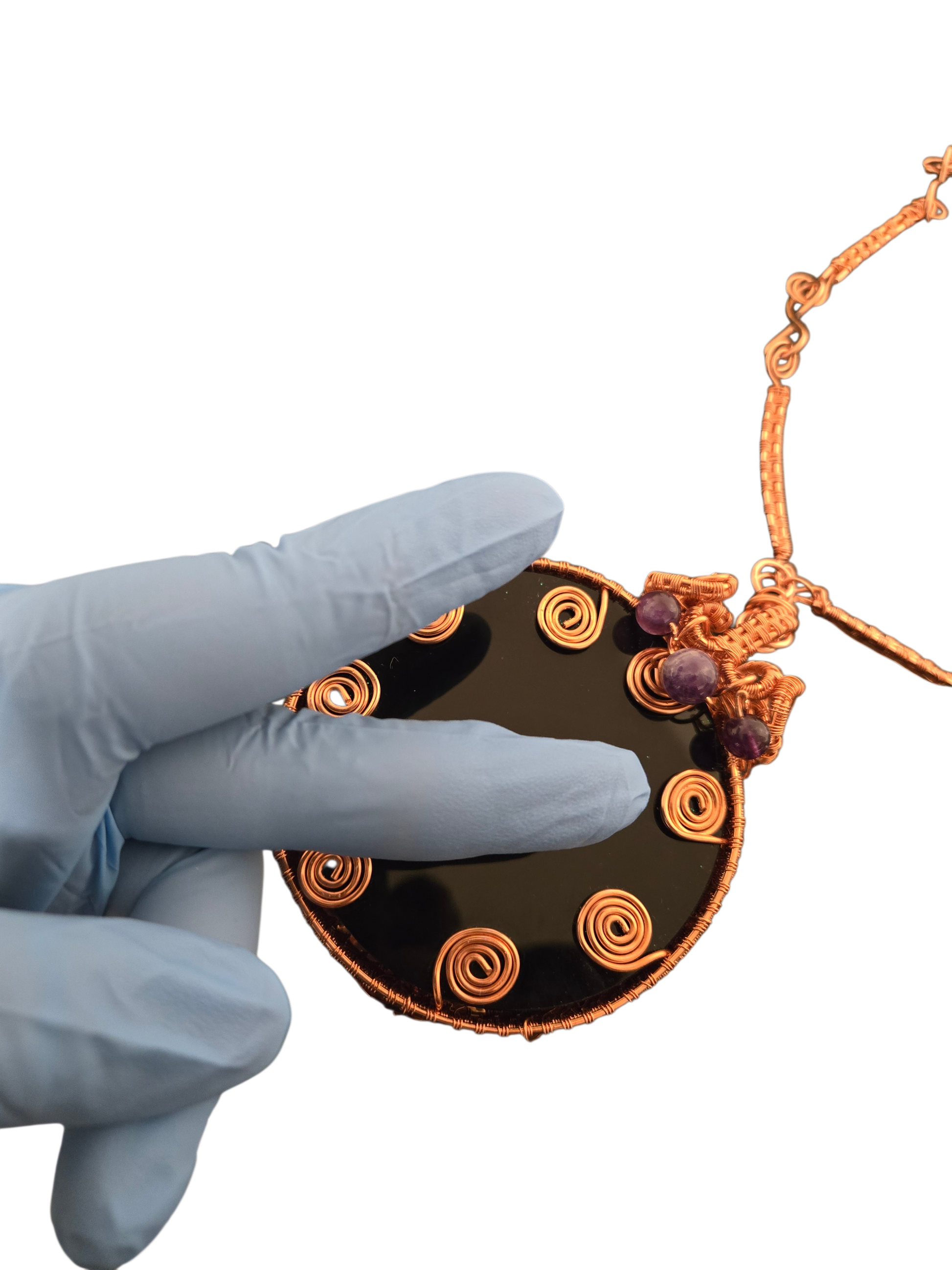 Add powerful protection and timeless style to your look with our handcrafted Copper Wire Wrapped Round Obsidian Black Mirror Necklace. Each pendant features a polished black mirror obsidian stone wrapped in pure copper to enhance energy flow, grounding, and spiritual shielding.